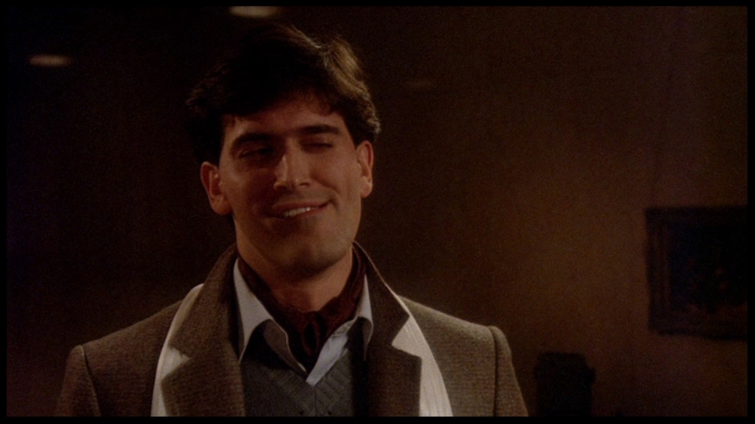 Like a Roadrunner cartoon colliding with the Three Stooges in a montage from The Hudsucker Proxy, the movie is wonderfully wild and inventive. Technically it's also pretty impressive, especially as it's only his second movie. The many sight gags, mad set pieces and even the finale car chase - featuring "The Classic" Raimi's very own Delta 88 Oldsmobile - are pretty successfully pulled off on the budget and considering the on-set problems they were having with the cast and studio.