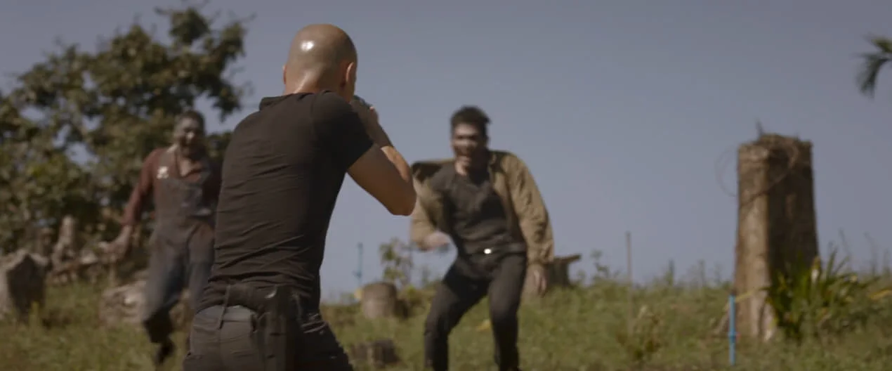 There is one effectively shot fight sequence with Dacascos getting to show off his martial arts abilities. Sadly the other action moments are just the sort of running and gunning down zombies scenes that wouldn't look out of place in a Eurocine movie or middle season episode of The Walking Dead.